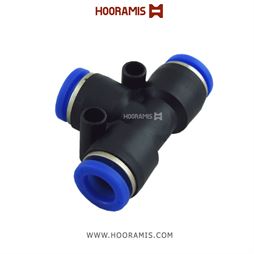 اتصال T شکل سه شیلنگ به یکدیگر در سیستم پنوماتیک