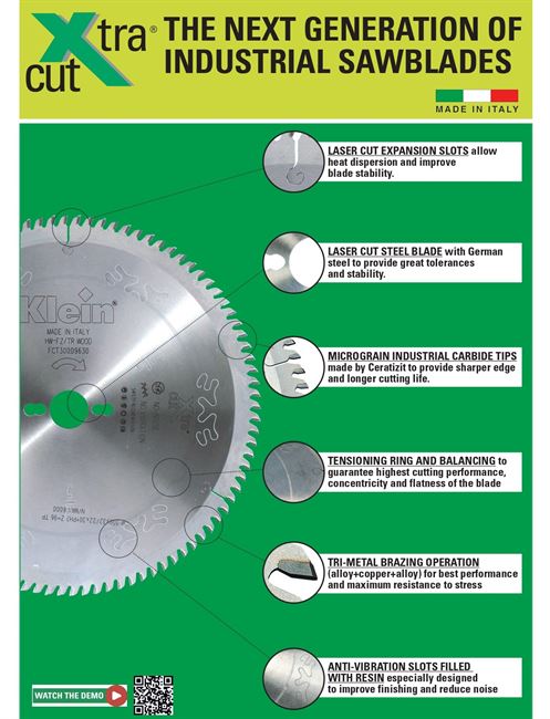 تیغ اره الماسه MDF بر و لمینیت بر 60 دندانه قطر 250 شفت 30 کلین (Klein) ایتالیا | کد رفرنس FCT250.06030 |
